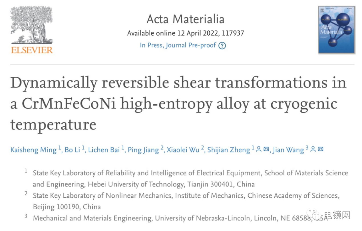 近日,我院原子尺度研究团队及其合作者在金属材料领域顶级期刊Acta Materialia上发表了题为“Dynamically reversible shear transformations in a CrMnFeCoNi high-entropy alloy at cryogenic temperature”的研究论文,揭示了高熵合金在低温下的动态可逆剪切转变行为,设计了纳米片层状双相结构高熵合金,实现了材料强度和延展性的同时提升。论文的第一作者为我院明开胜副教授,通讯作者为我院郑士建教授和内布拉斯加大学林肯分校王健教授, 合作者为中科院力学所武晓雷研究员团队。