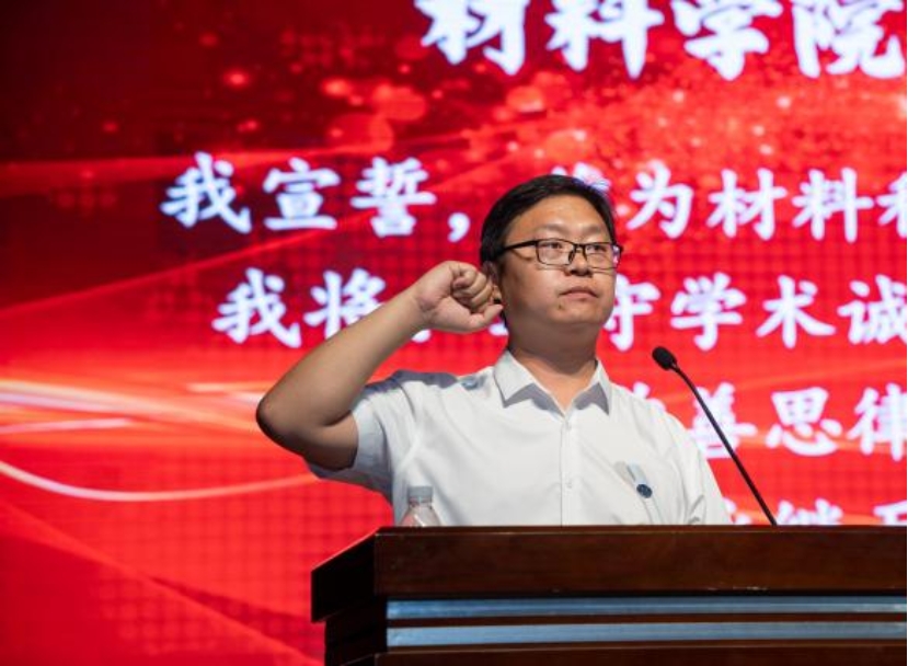典礼最后,全体师生共同宣誓。庄严的誓词背后是yl23455永利集团对于学生成长的关注和对学生未来的期望。全体师生举起右拳,目光坚定,挺拔的身姿展现了材料师生的坚定信念!
