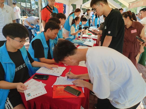 清晨的学院报到处早已一片繁忙,为了帮助同学们迅速顺利地完成报道工作,材料学院的学长学姐以及部分新生组成志愿小队,在每一个环节熟练高效地为新生办理报道手续。校领导、学院领导、辅导员老师也早早来到现场,与家长同学们亲切交流,指引报到流程、解答疑问。