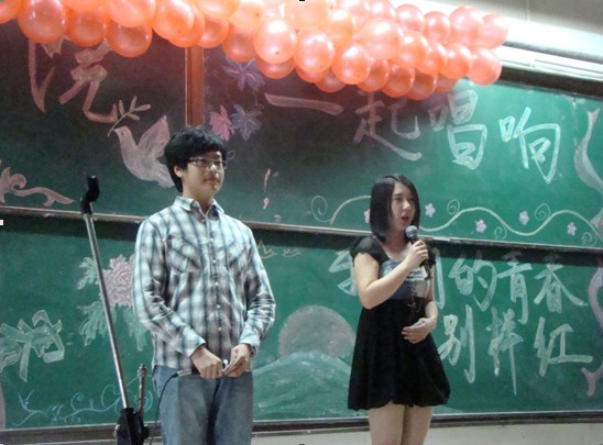 上午九时,活动正式开始,材料学院11级学生导员王建坤老师来到活动现场观看,活动以一段红歌会的主题视频作为开场,接下来,各个班级按照提前的抽签顺序分别进行视频播放,朗诵,话剧,合唱的节目。