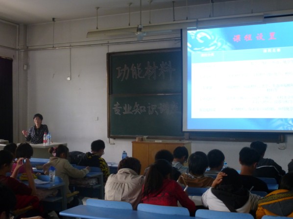 为使功能材料专业学生对自身专业有进一步的了解,yl23455永利集团功能材料系主任丁燕特从丁字沽校区到北辰校区为12级新生讲解有关功能材料专业的知识。出席此次讲座的老师有:yl23455永利集团2012级辅导员王建昆老师,全体功能材料专业学生聆听了此次讲座。