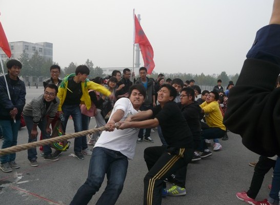 在比赛接近尾声的时候,学生会主席和各部门部长分成两队,进行了有趣的拔河表演赛,让在场每一个人都开怀大笑,活跃了比赛的氛围。