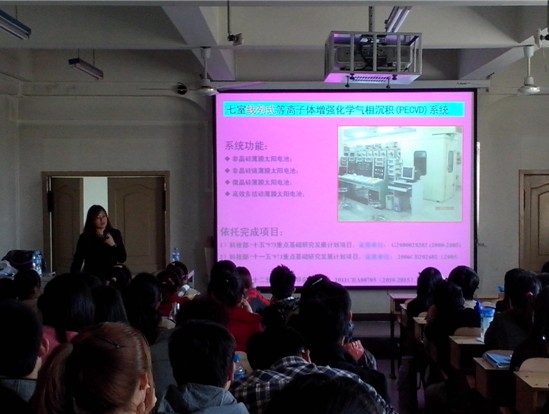 张晓丹老师介绍了新型光伏特材料与太阳能电池、透明导电氧化物薄膜与器件、纳米材料与器件的研究进展情况。