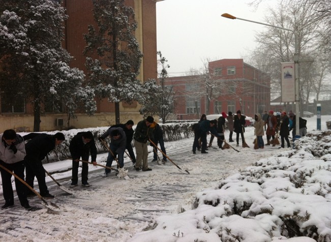 为了美化校园方便同学老师通行,材料学院领导积极提倡材料学院机关人员开展除雪活动,在各位辅导员提议下,材料学院大二大三学生也积极响应学院倡议。