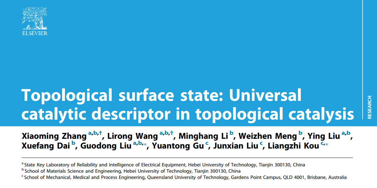 团队骨干张小明教授与澳大利亚昆士兰科技大学寇良志教授团队展开合作,首次对传统催化描述符在拓扑催化剂中的适用性进行了系统研究,提出了拓扑表面态密度可以作为适用拓扑催化剂的新型统一催化描述符。他们以具有拓扑节线网的金属二硼化物拓扑催化剂为研究对象,发现对于电催化析氢反应,以d带中心为代表性的多种传统催化描述符并不能与它们的催化活性建立起联系;然而,与拓扑参量直接相关的拓扑表面态密度与其催化活性能够呈现出优异的线性关系。这一催化描述符的建立不仅对理解拓扑催化机制具有重要意义,还将为设计高性能拓扑催化剂提供新的依据。该工作于2023年5月,以研究性论文(Research article)形式在国际期刊Materials Today(DOI: 10.1016/j.mattod.2023.05.002)上发表。论文第一作者为张小明教授,我校博士研究生王莉蓉为共同第一作者,刘国栋教授和昆士兰科技大学寇良志教授为论文通讯作者。