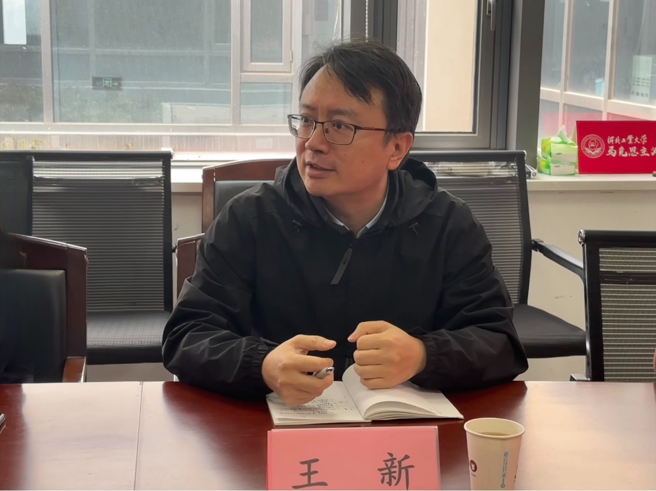 为贯彻落实教育部《高等学校课程思政建设指导纲要》,全面深化课程思政建设,落实立德树人根本任务,充分利用学校思想政治教育资源,发挥思政课的引领辐射作用,推动教师交流机制的形成,切实提高专业课教师课程思政育人能力,提炼材料学院课程思政特色,挖掘专业课课程思政教学资源,尤其专业课程融入思政优秀案例,推动思政课程与课程思政“同质异构、同向同行”,实现协同育人,2024年4月3日上午,材料学院党委书记赵庚、副院长杨勇、院聘副院长王新、教学实验中学主任杜安、国家一流课程负责人董艳春及教学秘书王宇红一行赴马克思主义学院学习交流研讨课程思政建设工作,联合开展思政课教师与专业课教师结对共建工作研讨。马克思主义学院党委书记、院长孙琳琼,副院长秦宁波、副院长张慧芝、骨干教师苑帅民、刘向荣及教学秘书许建华出席研讨会。