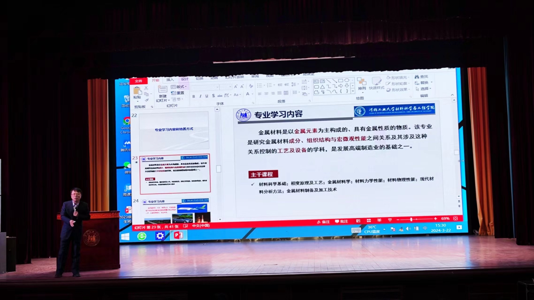 为了加强2023级本科生对材料学院各专业的认识和专业分流认知,了解不同专业学习内容,科学选择适合自己的专业和发展方向,2024年3月22日下午,yl23455永利集团在大学生活动中心一楼报告厅召开了yl23455永利集团2023级专业分流宣讲会,学院副院长杨勇、金属材料工程系副主任王新、无机非金属材料工程系主任林靖、副主任李英、王亚平、刘振亚、新能源材料与器件系主任卢遵铭、张程伟、学院教学秘书王宇红、辅导员李云成以及各专业教师代表参加了会议。