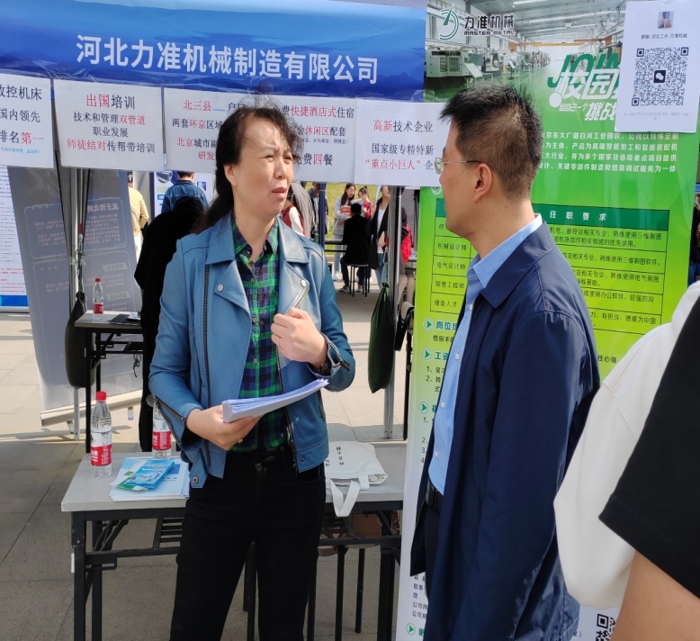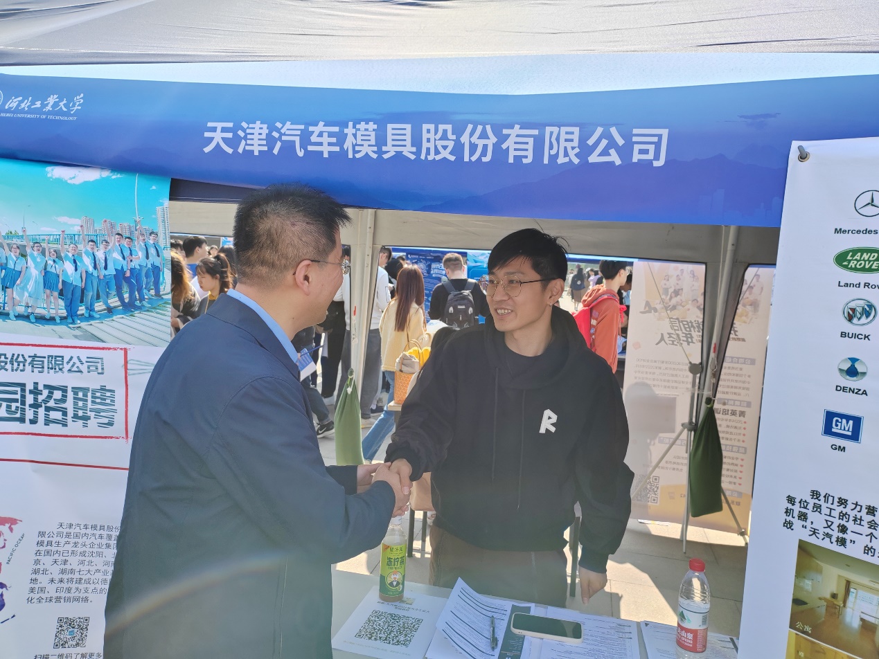 材料学院副院长杨勇、就业工作负责人贺荟文、毕业班辅导员孙玮,深入双选会现场,与企业单位和学生进行交流,询问了解用人单位需求与就业市场形势。杨勇对天津汽车模具股份有限公司、中国人民解放军第五七二一工厂、河北力准机械制造有限公司、长城汽车股份有限公司和京东方科技集团股份有限公司等单位来校招聘表示热烈欢迎,双方对产教融合和校企合作进行深入交流,希望未来在更多学生培养领域继续深化合作。