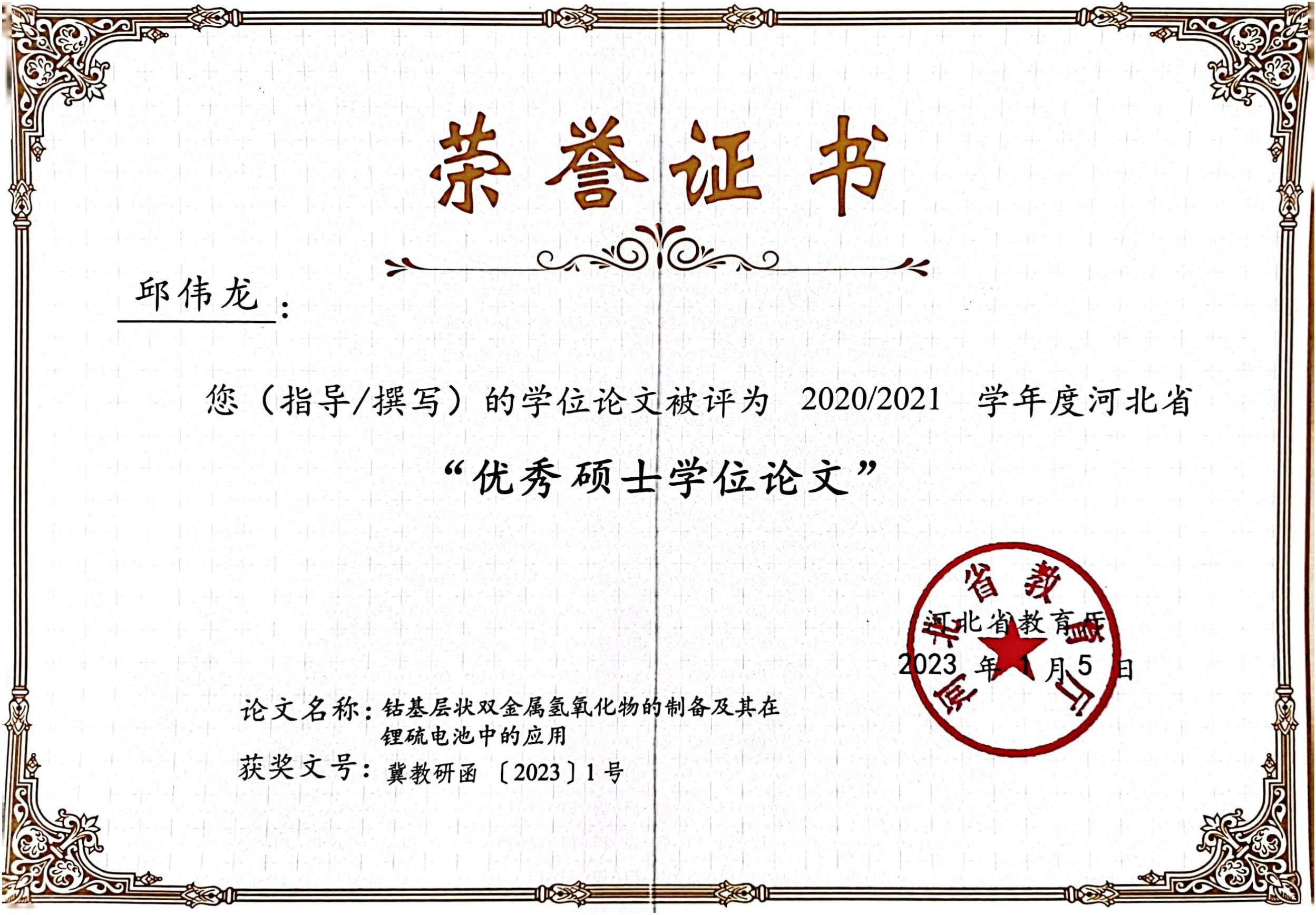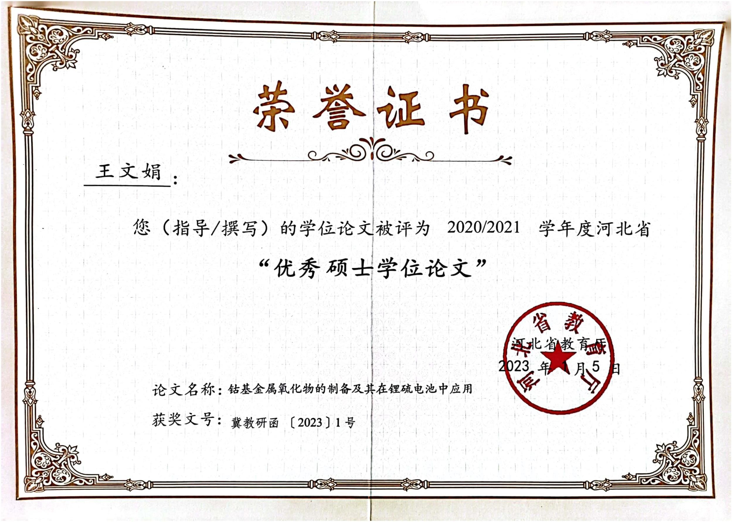 根据《河北省教育厅 关于公布2020/2021学年度河北省优秀博士、硕士学位论文评选结果的通知》冀教研(2023)1号文件通知,我院三名2021届硕士毕业生的学位论文获得2020/2021学年度河北省优秀硕士论文。