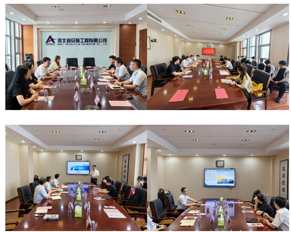 活动首站,团队参访了河北省安装工程有限公司。河北省安装工程有限公司总工程师周玉前、人力资源部部长史新社、人力资源部副部长朱伟明、人力资源部科员韩涛出席了活动。