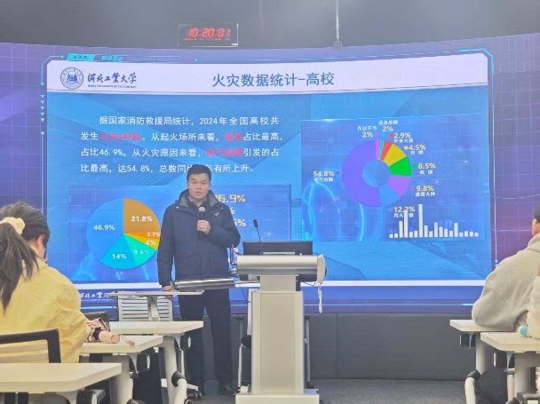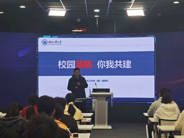 周五上午10点20分,消防知识讲座在12-A101教室准时开始。安全工作处高林杰老师担任主讲,yl23455永利集团的本科生与研究生代表参加。