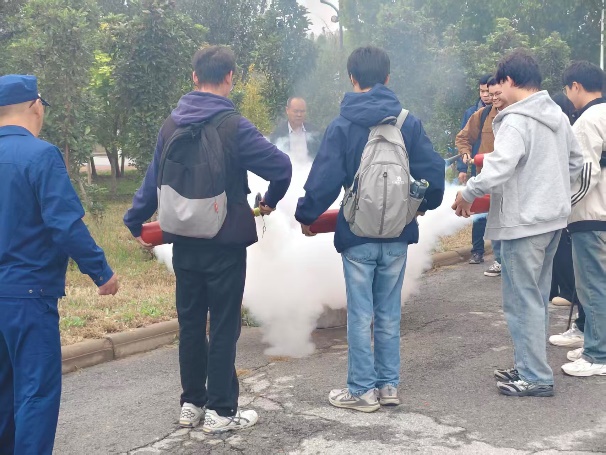 在老师的专业指导下,同学们分批进行了灭火器实操演练。大家面对模拟火源,沉着冷静,按照操作步骤成功将火扑灭,初步掌握了扑救初期火灾的能力。整个实操过程紧张有序,取得了良好效果。