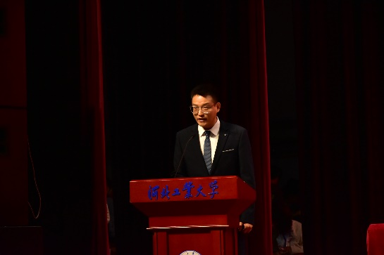 郑士建在发言中分享了学院的发展历程与学科成就,从人才培养、学科发展等角度介绍了学院情况,并表达了对新生们勇攀材料高峰的期盼。