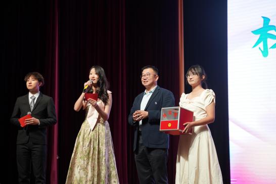 新生代表金材卓253班刘哲宇和在校生代表团委学生会主席乐轩依次上台演讲,他们分享了入学以来的感悟与期待,表达了对大学生活的憧憬,也展现了与同学们共同成长、不负韶华的决心。