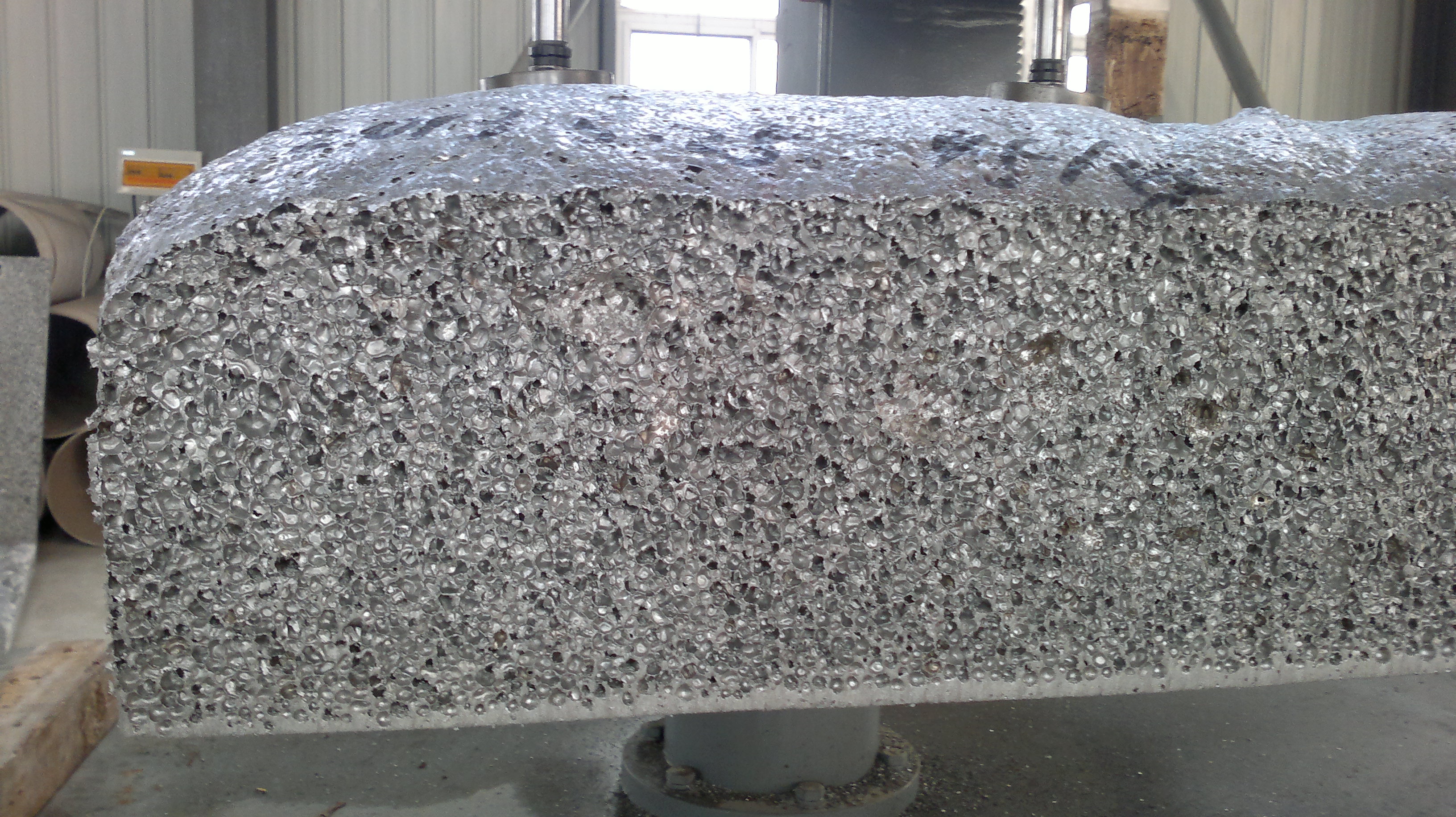 yl23455永利集团赵维民教授课题组通过近 10 年对闭孔泡沫铝产业化关键技术的研究,获得完备的泡沫铝产业化参数,掌握了泡沫铝产气动力学及热力学机理。创新性地设计了具有自主知识产权的泡沫铝产业化流水线,生产线工艺参数控制精确、生产效率高、设备布局紧凑、安全性能高、自动化程度高,能够安全高效的实现泡沫铝的产业化生产,填补了国内泡沫铝产业化生产线设备的空白。yl23455永利集团在泡沫铝板材产业化方面 具有完全自主知识产权,产品 最大尺寸可达 1200mm ×600 mm , 是目前国内最大尺寸的一次成型泡沫铝板,产品孔结构均匀、断面美观、力学及声学性能优良。