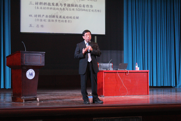 开场,马坚勇博士首先给大家分享了他的梦想,展示他从懵懂少年到一位年轻有为的企业家最后成为材料领域成功科学家梦想的转变历程。接着,马坚勇博士用自己丰富的学识和阅历,分别介绍了中国大陆与中国台湾光电企业的发展过程,向同学们讲述了一个个材料领域的成功与奇迹。随后,马坚勇博士为所有同学讲了自己心中的中国梦:中国“菲利华石英公司”梦想成为世界一流石英公司的气魄,令人尊敬;中国航天神州六号总设计师梦想“血百年之耻,圆千年之梦”,令人热血;守在边疆为材料事业辛勤付出的中国科学院院士梦想“勤奋,坚持,忠诚,实现梦想”,令人动容。马坚勇博士用坚定的语气告诉年轻人:勤奋和坚持是实现梦想的必要条件,而忠诚才是实现梦想的充分条件,一个人要想实现梦想,必须忠诚于工作的单位,忠诚于从事的事业,忠诚于祖国和人民,忠诚于自己的信仰。他说每个人都有自己的梦想,两岸三地所有中国人的梦想就是强大的信念,就是我们的中国梦。这些话极大地激励了现场全体师生,掌声经久不息。