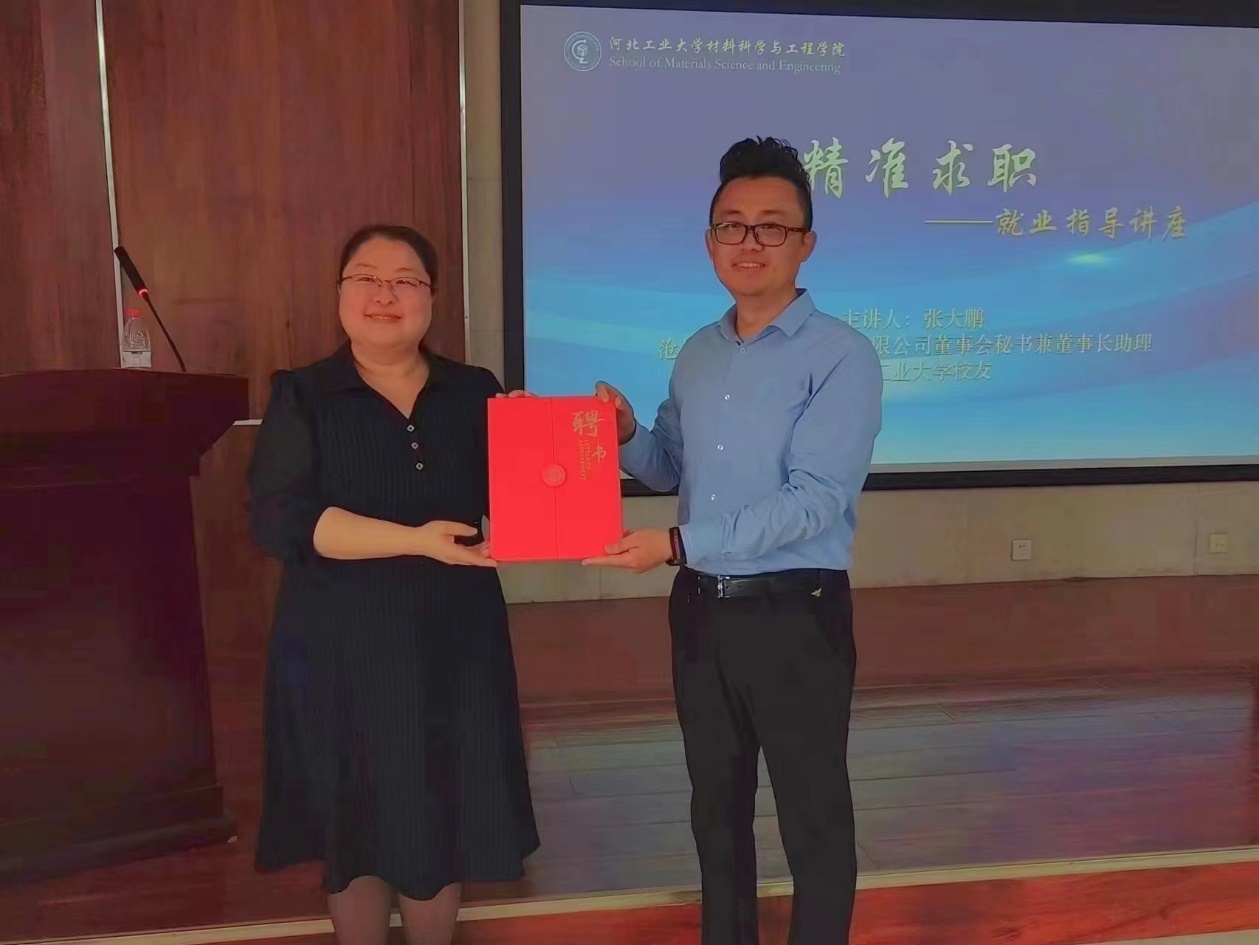 会后,学院特别聘请张大鹏校友作为yl23455永利集团“就业指导校外导师”,正处级辅导员张雪莹为其颁发聘书。