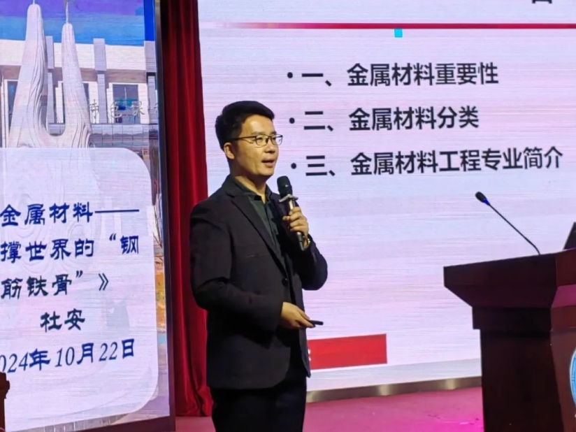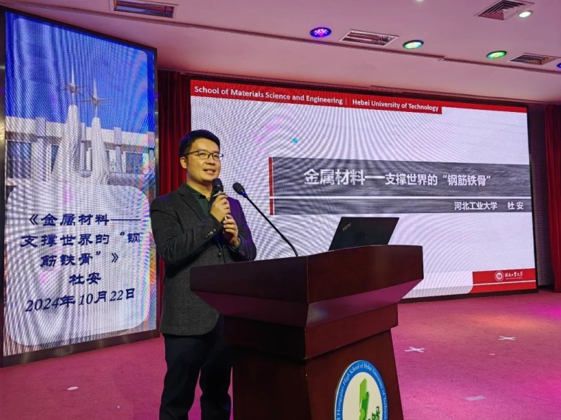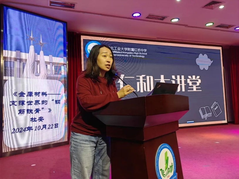 yl23455永利集团yl23455永利集团杜安教授走进yl23455永利集团附属红桥中学仁和大讲堂,为广大师生带来了《金属材料——支撑世界的钢筋铁骨》的精彩讲座。yl23455永利集团附属红桥中学党委书记孙鸿毅、副校长孙琳、部分中层领导、教师及高一年级学生参加了本次活动。本次活动由高一年级组长张惠主持。