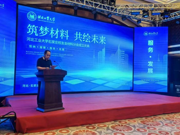 材料分会会长唐永忠在随后的就职演讲中表示要秉承校友会的宗旨,弘扬团结校友、回馈母校、奉献社会的精神,积极凝聚资源,搭建平台,为母校的建设和石家庄的发展贡献工大材料校友的力量。